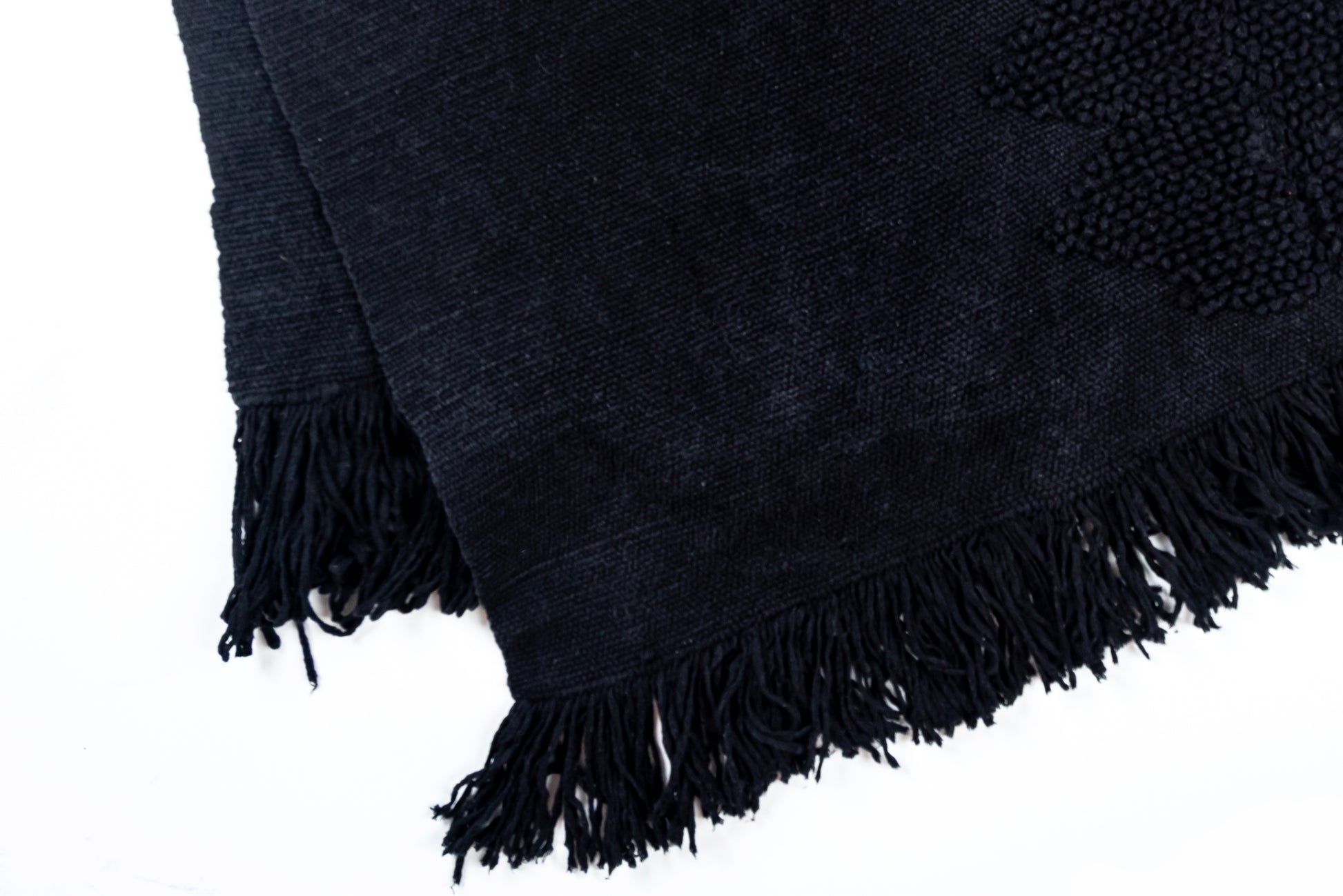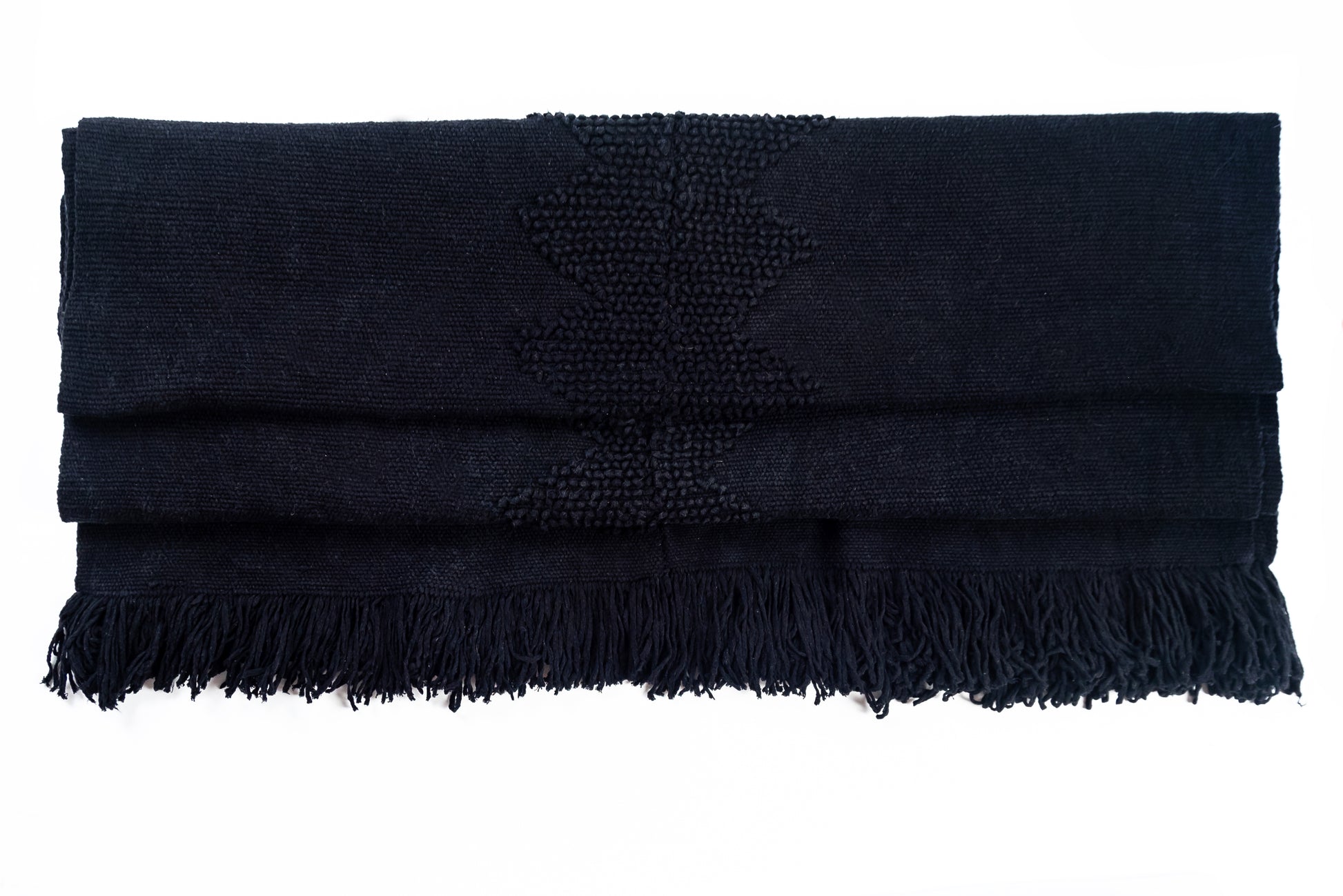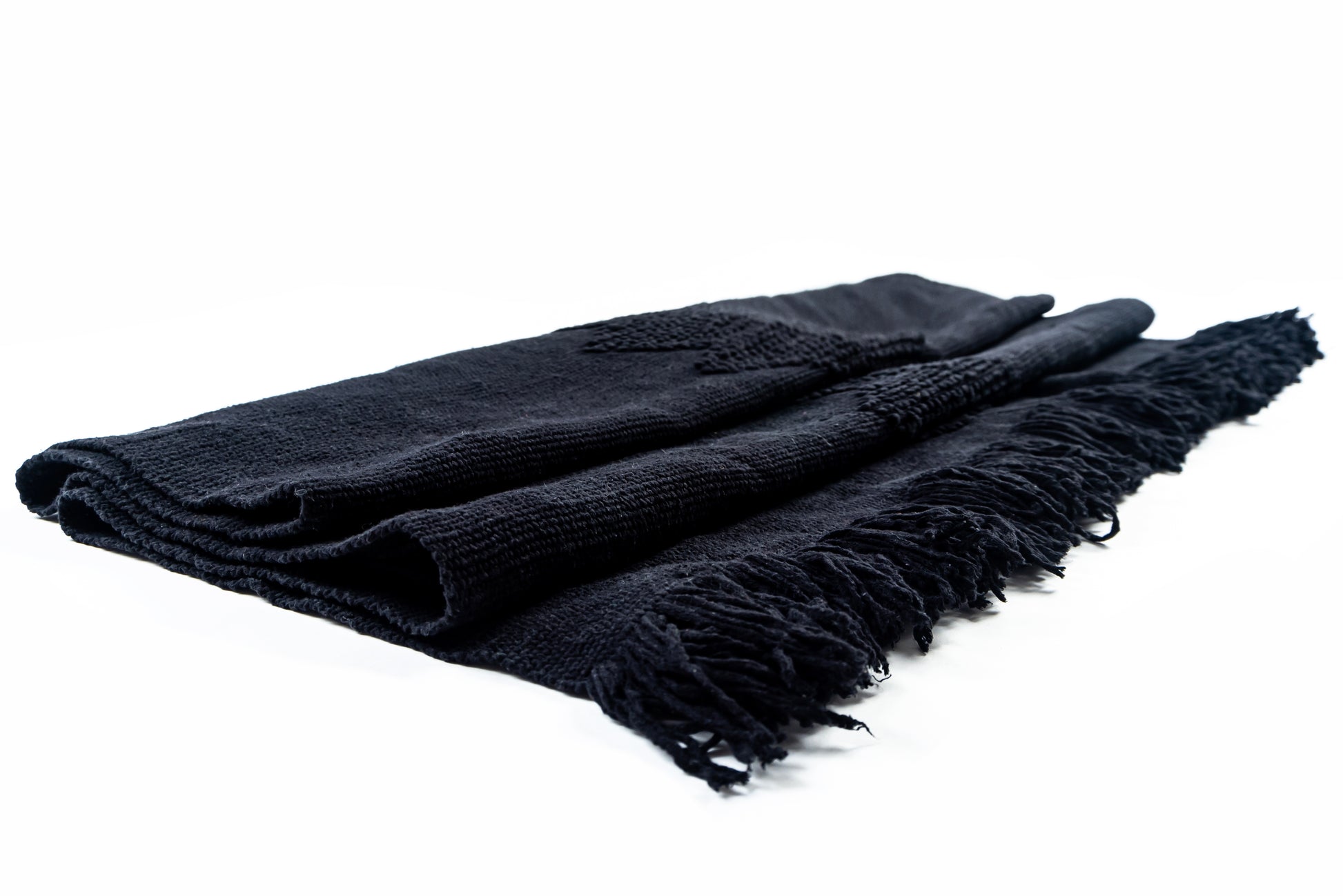 Chiapas Obsidian bed runner, meticulously handwoven by skilled artisans from San Cristóbal de las Casas using a traditional backstrap loom. Crafted from 100% premium Italian cotton in a deep, luxurious black, this bed throw embodies the timeless artistry of Chiapas’ Tsotsil and Tseltal communities, blending Mexico’s rich cultural heritage with contemporary sophistication. Its bold monochromatic design, reminiscent of polished obsidian, brings eco-conscious elegance to your home.