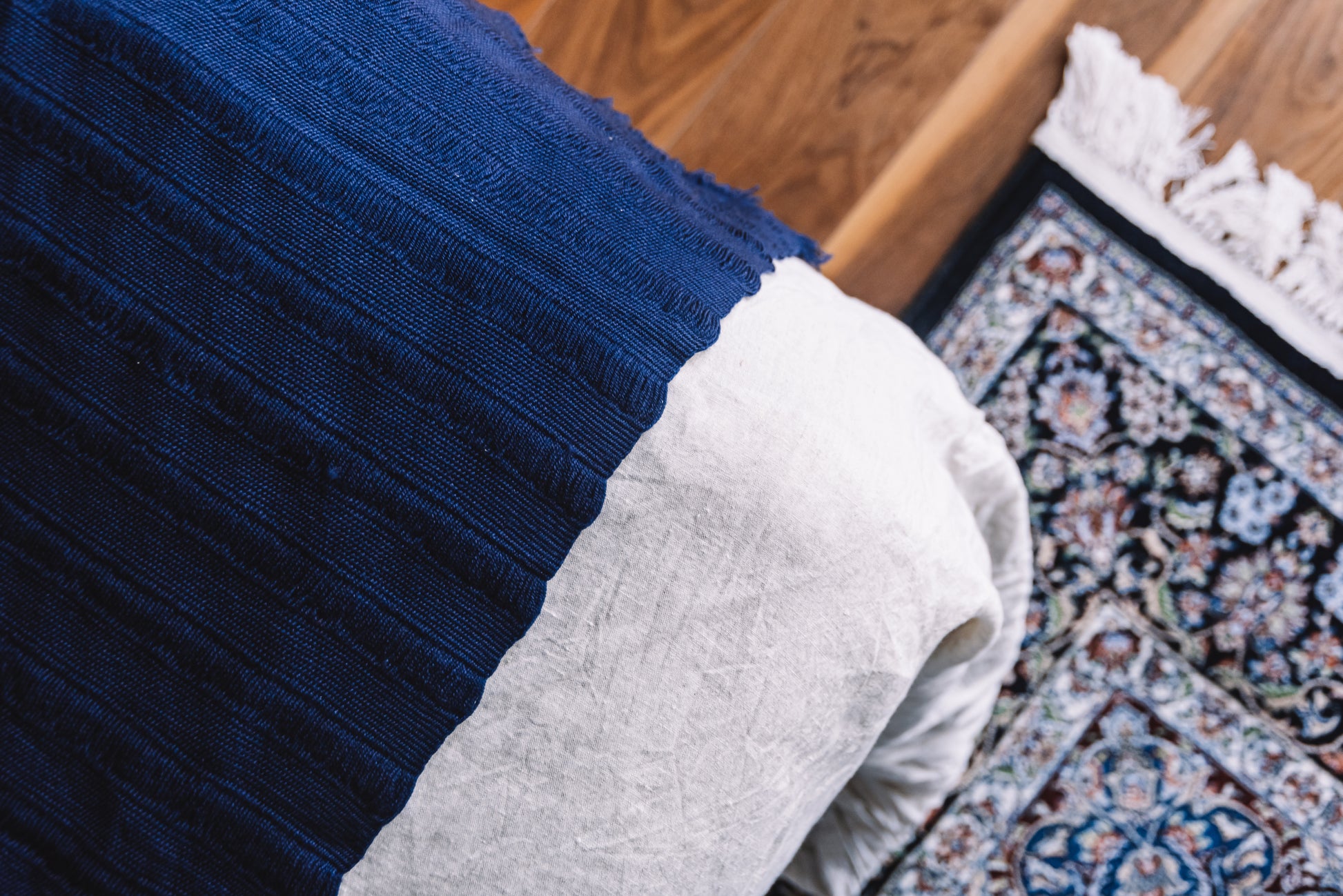 Sierra Azul bed runner, handcrafted by skilled artisans from San Cristóbal de las Casas using a traditional backstrap loom. Woven from 100% premium Italian cotton in striking navy blue and crisp white, its elegant striped design evokes the tranquil horizons of Chiapas’ mountainous landscapes. This luxurious bed throw blends Mexico’s rich textile heritage with contemporary sophistication, offering an eco-conscious masterpiece for your home.
