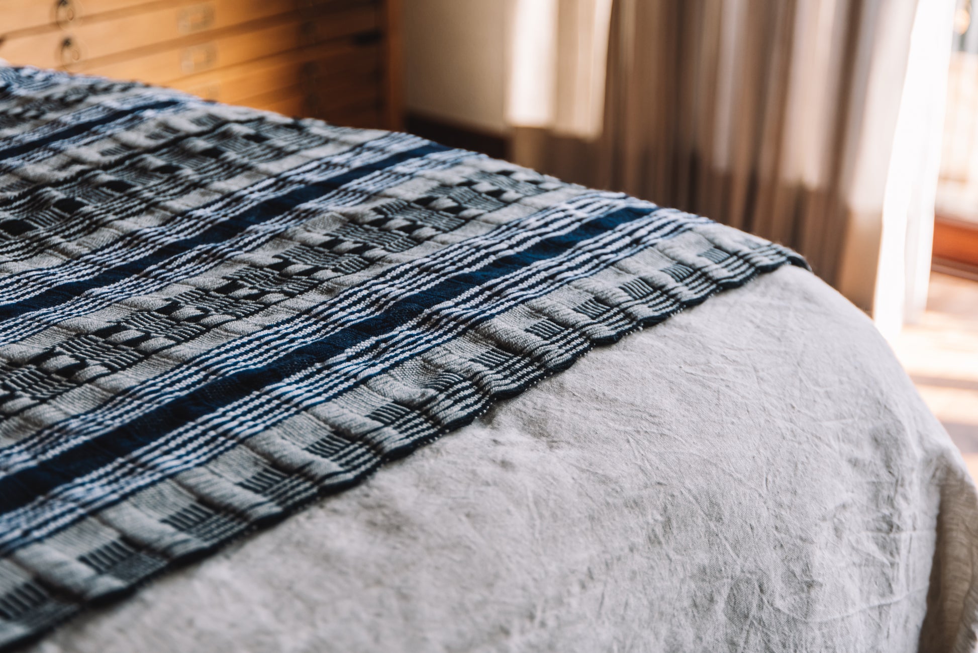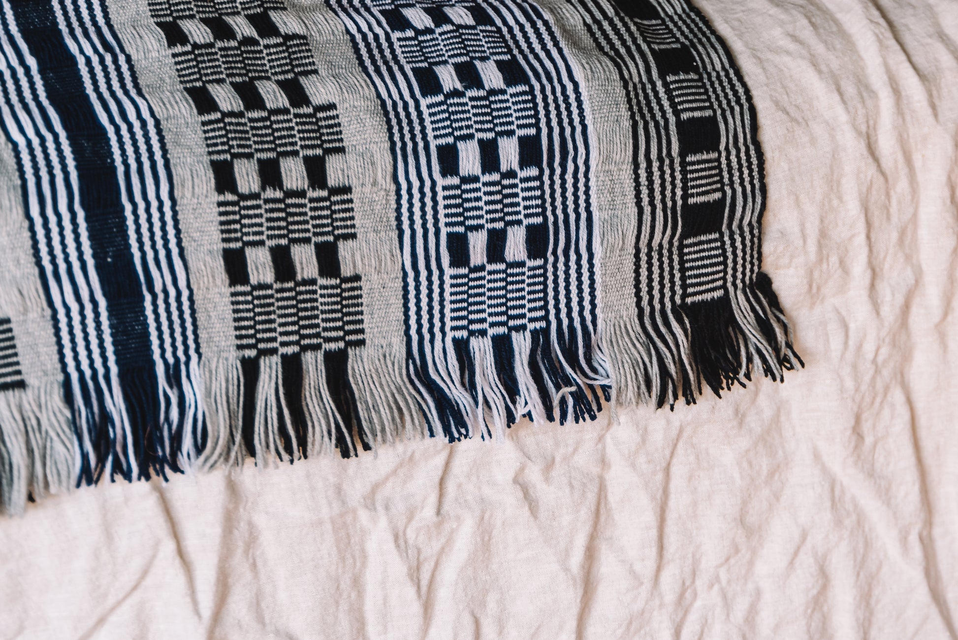 Discover the artistry of San Cristóbal de las Casas with our exquisite bed runner, handwoven on a traditional backstrap loom by skilled Chiapas artisans. Crafted from 100% premium Italian cotton in elegant shades of black, grey, navy, and white, this luxurious bed throw blends Mexico’s rich textile heritage with contemporary sophistication. Each piece reflects the timeless traditions of the Tsotsil and Tseltal communities, bringing authentic, eco-conscious beauty to your home.